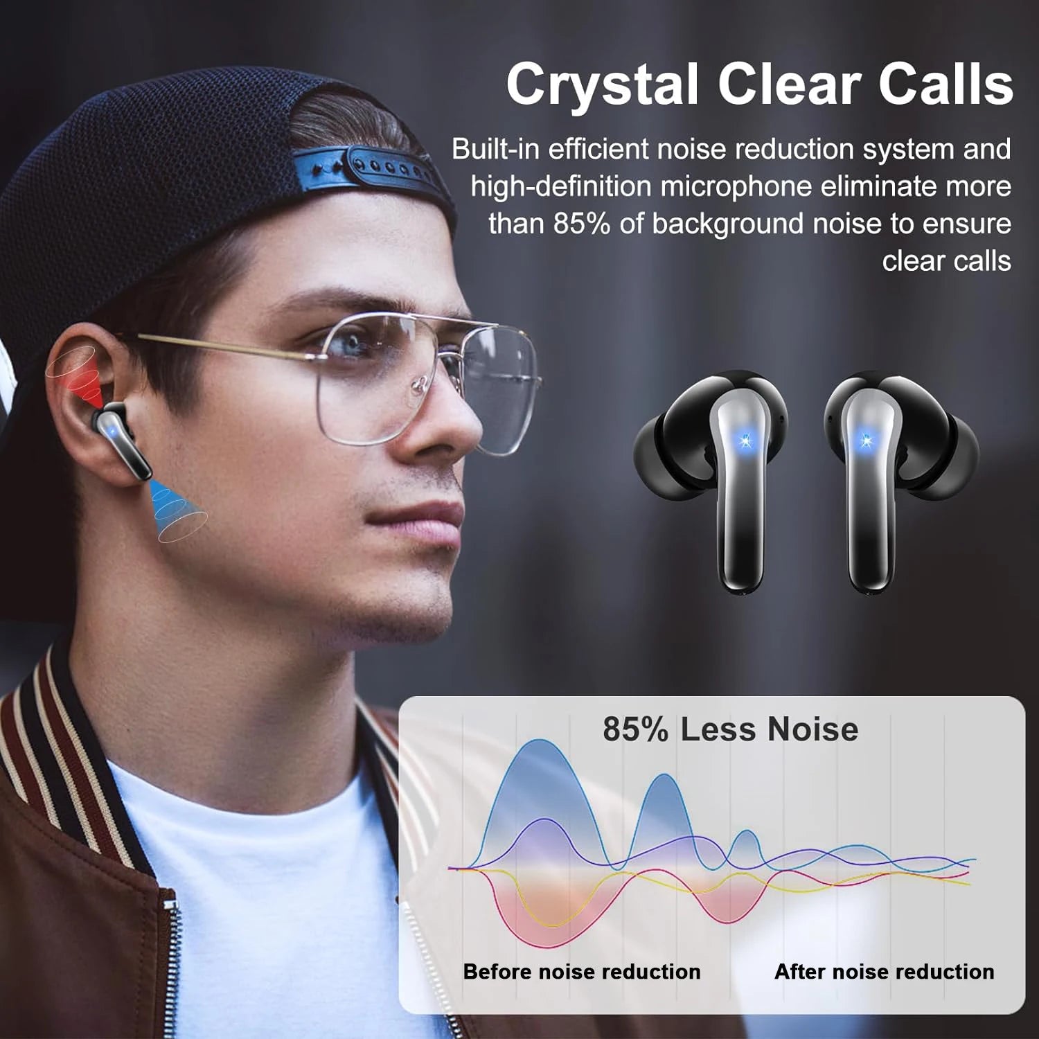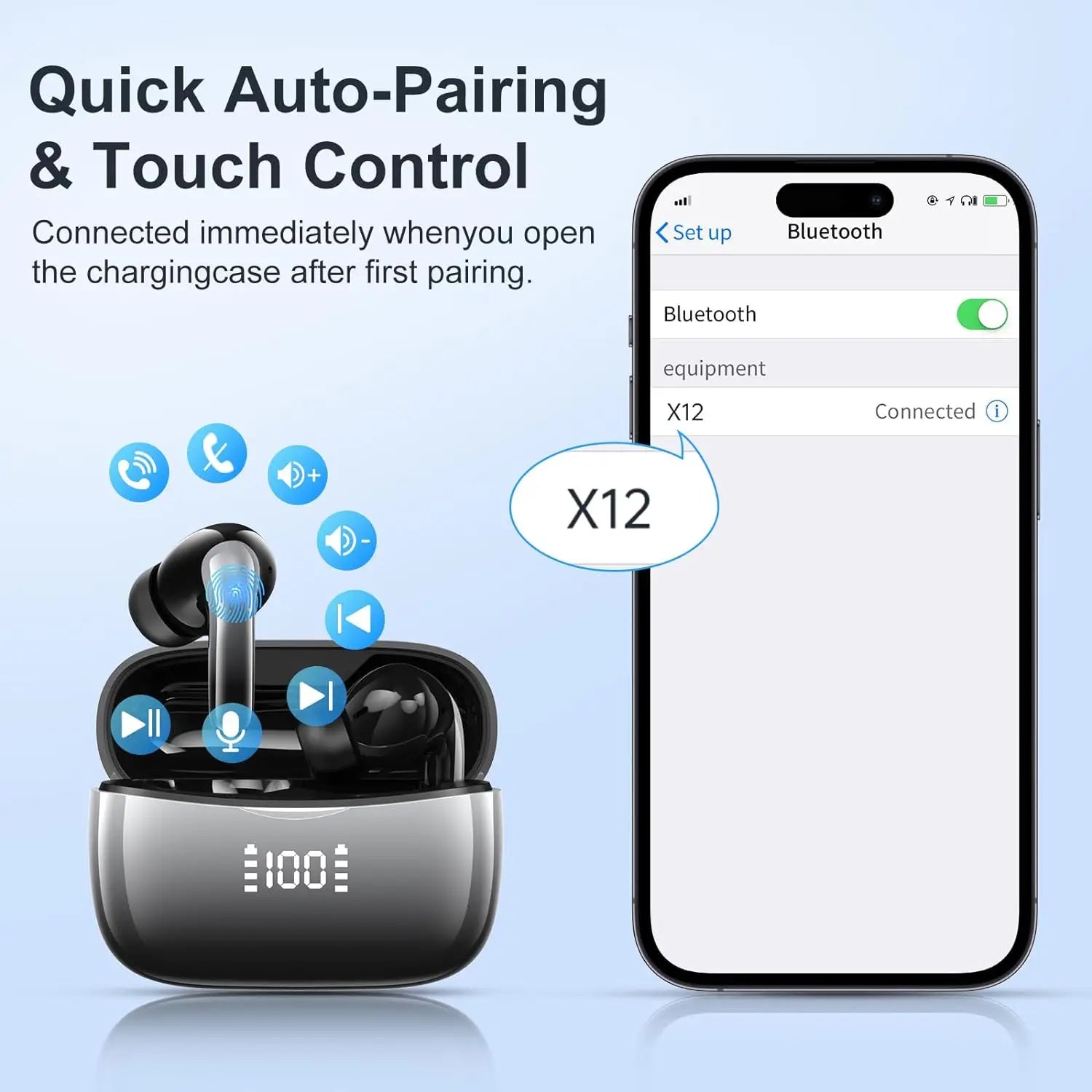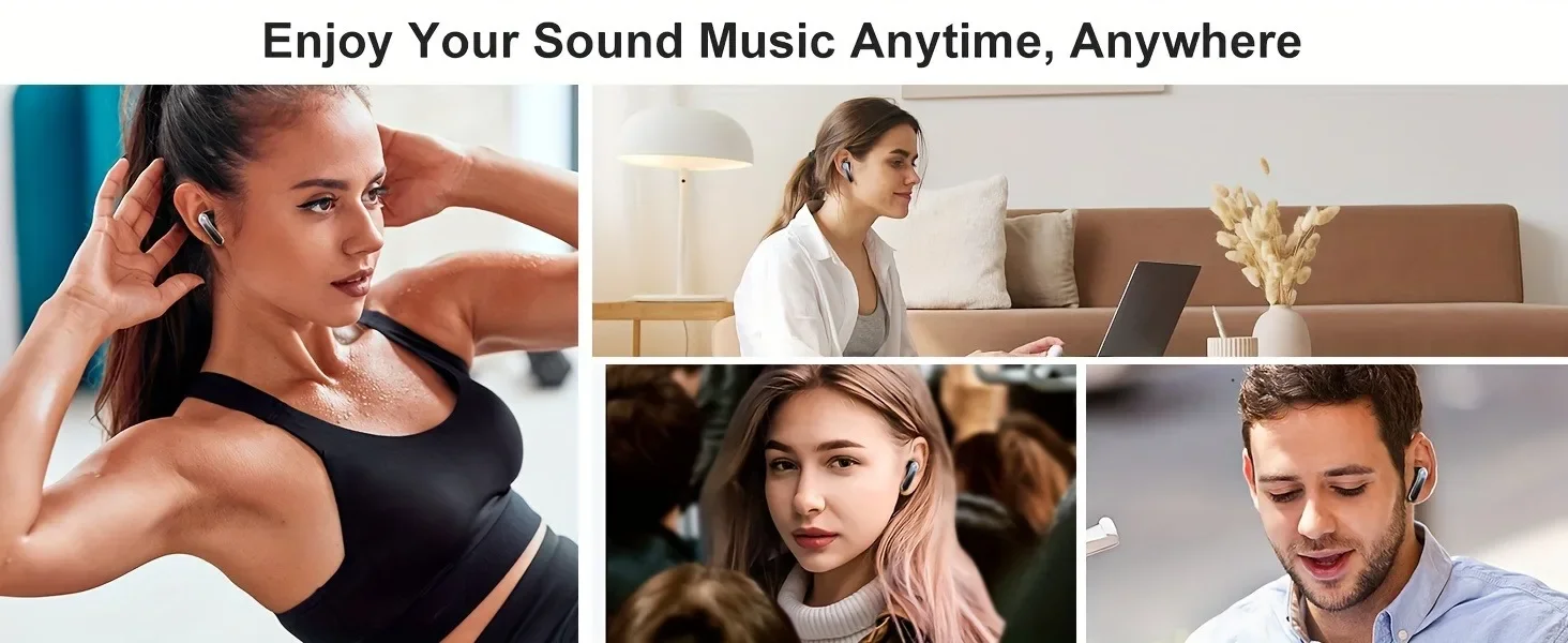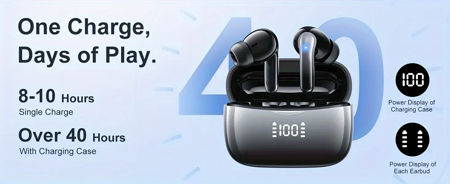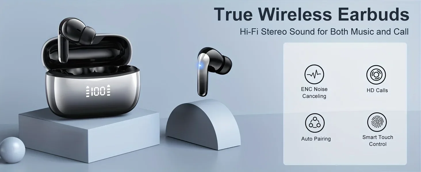 Bluetooth 5.3 Wireless Earbuds ENC Noise Cancelling Mic 50H Playtime Deep Bass Stereo Sound IP7 Waterproof LED Display Mini In-E